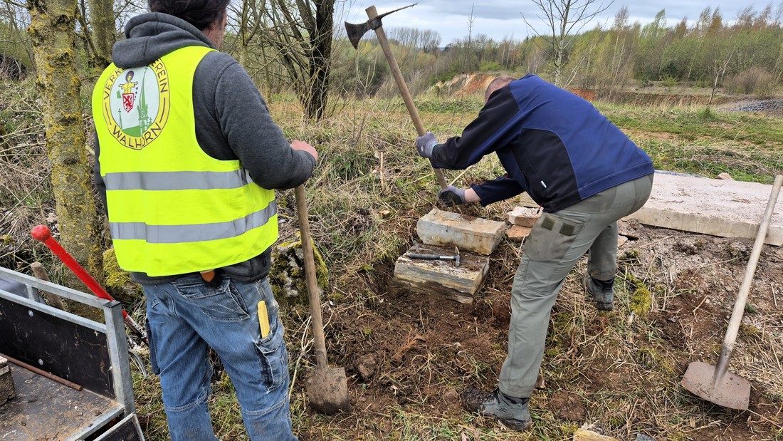 Anfang Mai 2025: Ulrich, Reiner, Stephan und Stephan treffen sich in Walhorn hinter dem Karolingerplatz.
